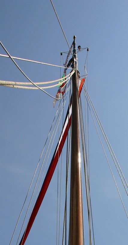 Een wezelijk onder deel van een zeilboot. Nadat we in het voorjaar 2007 alle rondhouten hadden gelakt waren we dik tevreden met het resultaat, alles glom blonk en zag er goed uit. In de zomer ondekte ik dat er een lijmnaad van de mast over een lengte van een meter een beetje openstond,niet weten of dit al zo was of dat dit nieuw was besloot ik de naad te merken zodat ik kon zien of de naad groter werd. Najaar 2007 was de naad nog net zo groot dus heb ik hem op gevuld met epoxyhars in de veronder stelling dat het zo wel goed zou zijn. Zomer 2008 mooi gezeild en geen problemen met de mast dus was de simpele conclusie dat het probleem was op gelost. Voorjaar 2010 lag de mast naast huis om dat er een nieuwe marifoon kabel in moest, hier heeft hij 2 maand gelegen en is ook weer voorzien van een frisse laklaag, bij het terug plaatsen van de mast liep er water uit de mast, bleek dat er toch weer een lijmnaad open stond. Deze naad hebben we gerepareerd maar een lekker gevoel gaf het niet,over de zomer begon de mast ook nog eens steeds donkerder te kleuren waarop het besluit kwam dat er een nieuwe mast moest komen.